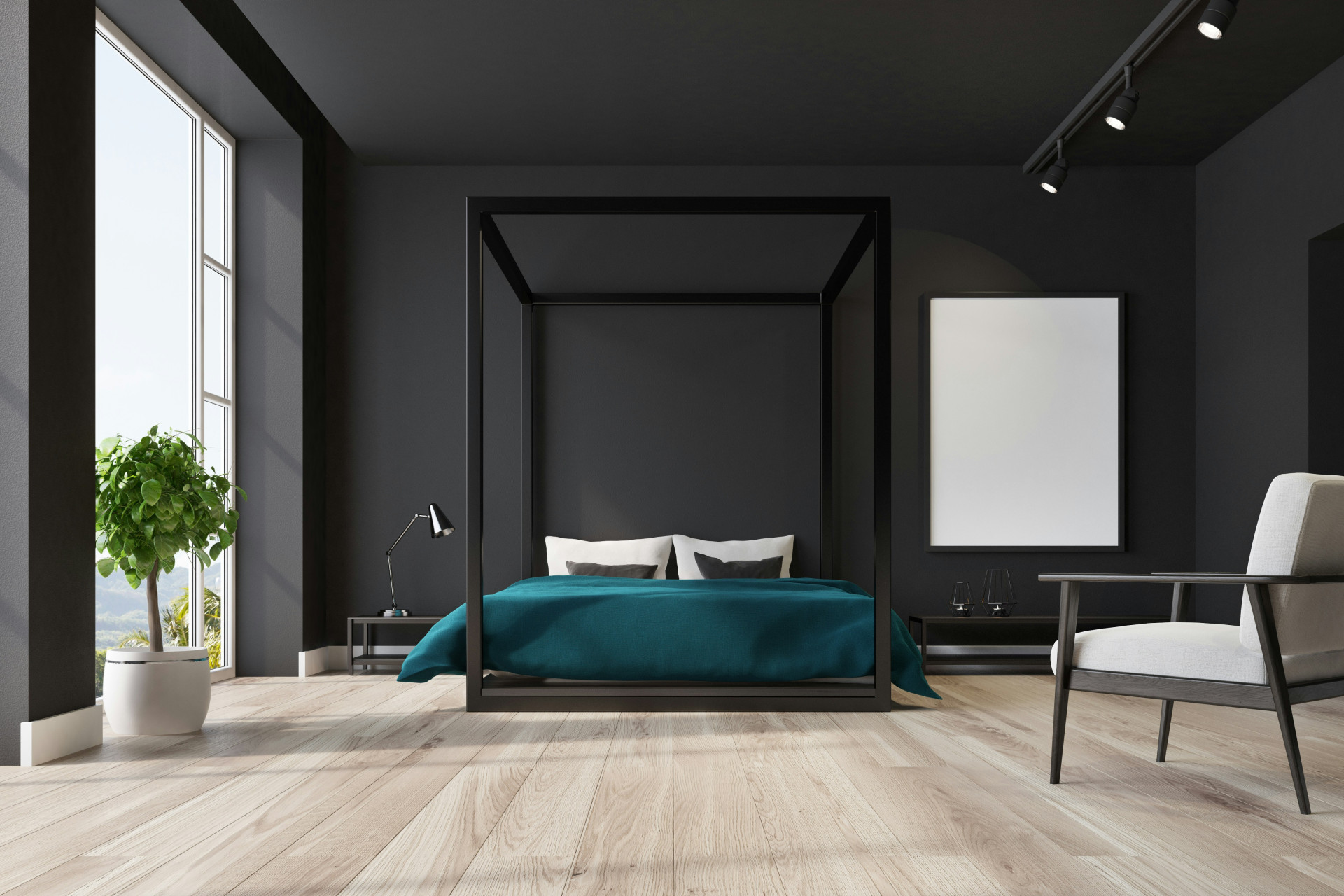 Lyse vægge og tekstiler får et rum til at virke større og luftigt, men mørke nuancer kan noget helt andet. De omslutter rummet og giver en følelse af tryghed og ro – ideelt til et soveværelse, hvor kroppen skal falde til ro efter en lang dag.